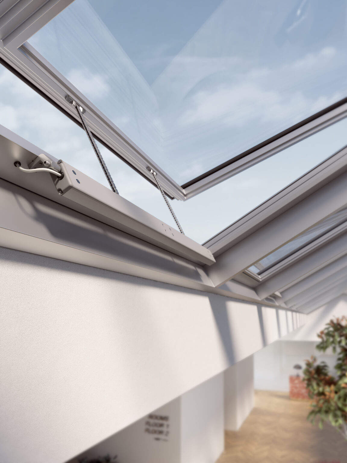 Attuatore a catena più potente: 600 N. Catene a doppia maglia inox. Dotato di una scheda di controllo integrata per sincronizzare la velocità. L’installazione non richiede la regolazione di chiusura. L’arresto avviene quando l’anta va in battuta, grazie all’intervento del limitatore elettronico ad assorbimento di corrente. Arresto elettronico in caso di sovraccarico.